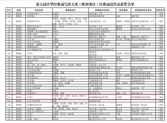 近日,第七届中华经典诵写讲大赛(陕西赛区)经典诵读大赛落下帷幕,由我院教师组成的教师组参赛团队在大赛中脱颖而出,荣获省级三等奖。此次获奖,既是我院教师队伍文化素养的集中体现,也为学院进一步深化文化育人工作注入了动力。