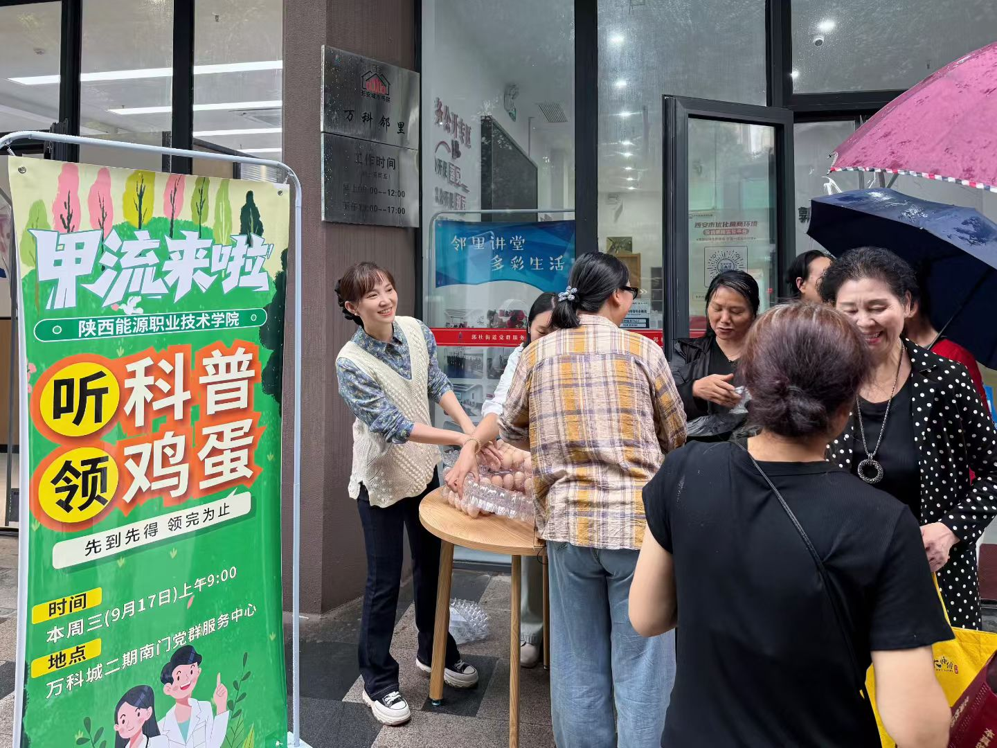 讲座结束后,宣讲团队为社区居民发放了甲流预防宣传手册和健康小贴士,并为老年群体送上鸡蛋、营养补品等慰问物资,传递学院对社区的温暖关怀。居民们纷纷表示,这场活动不仅让他们学到实用的健康知识,也让他们切实感受到社会的关心与支持。