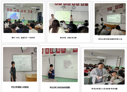 启动仪式当日,语文教研室同步组织“课间微分享”活动。教师们分组走进各班级,在课间十分钟进行好书推介与阅读交流。同学们品读文学经典、匠人励志读物,结合专业学习与职业理想畅谈感悟。短短课间十分钟,跳出了单一休息模式,让碎片化时间变为高质量育人课堂,有效引导学生告别浅层娱乐、拥抱深度阅读。