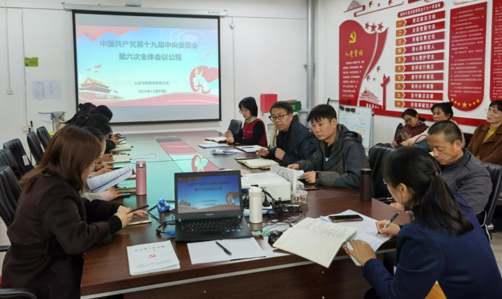 11月25日晚,党总支通过腾讯会议组织全体党员线上“云学习”。多名党员同志共同领学了《中国共产党第十九届中央委员会第六次全体会议公报》。通过再次深入学习,使大家对党的十九届六中全会召开的重大历史意义和全会最重要的成果有了进一步的认知和感悟。大家纷纷表示,将继续充分运用学习强国、微信公众号等学习载体开展线上分散学,推动十九届六中全会精神入脑入心,切实把学习成效体现到立德树人、教书育人工作中。