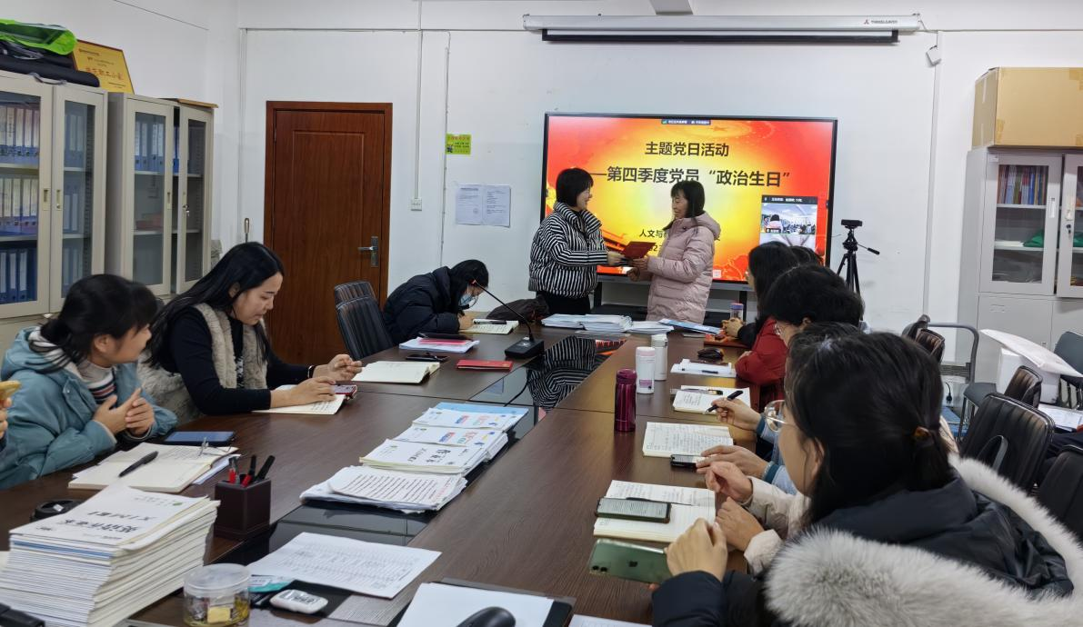 为进一步加强和规范党内政治生活,深化党员的身份意识、责任意识和宗旨意识。12月27日,我院党总支在学院会议室开展“同过政治生日 共忆入党初心”主题党日活动。学院副院长、党总支副书记王利荣及学院全体党员共同为在第四季度入党的沈东、陈欢、牛腊婷等8名党员过政治生日。党总支宣传委员王少华主持。