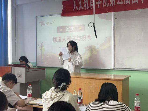 随后,主持人宣读了代表名额及产生办法、委员会的组成及产生办法和注意事项,让全体代表清晰了解选举规则。竞选演讲环节将大会推向高潮,候选人激情洋溢地阐述工作设想,展现出对团学工作的热忱与担当。
