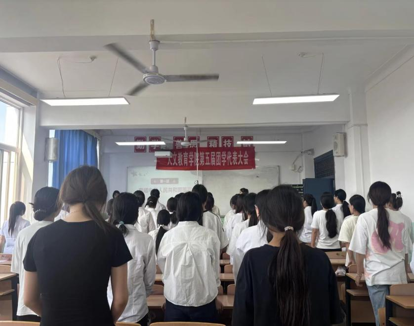 在全体与会人员共同高唱《中国共产主义青年团团歌》的热烈氛围中,大会圆满落下帷幕。此次团学代表大会的召开,不仅完成了团学组织的换届工作,更凝聚了人心,明确了方向。相信新一届团学干部将以崭新的面貌和饱满的热情投入工作,带领全院同学在新的征程中锐意进取,书写人文教育学院团学工作的新篇章。
