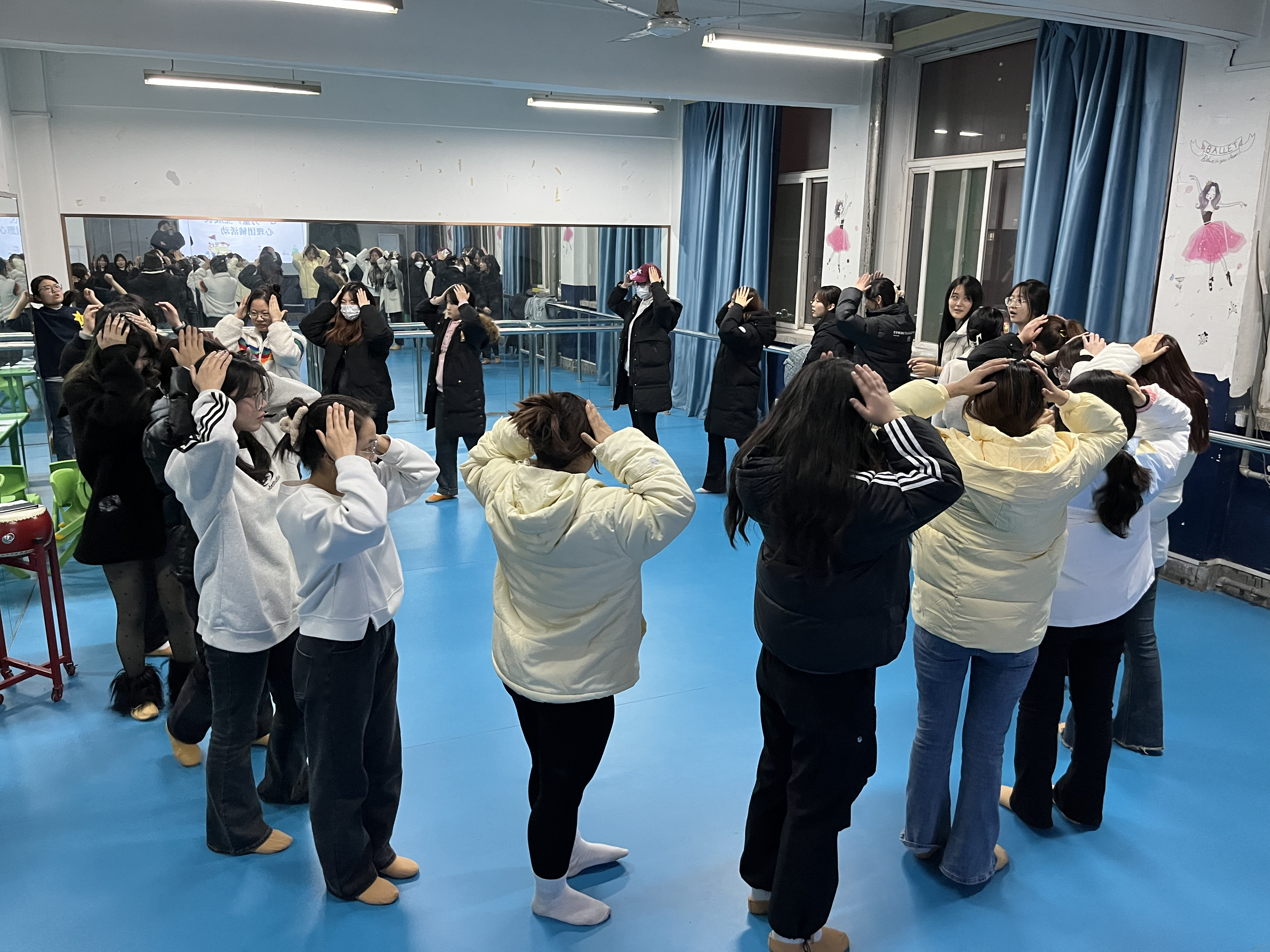 活动在有趣的热身互动“按摩操”中拉开帷幕。同学们按照主持人的指导,通过相互敲敲肩膀,拍拍两臂,敲敲背部,摸摸头顶等动作,快速放松身体,舒缓身心疲劳。热身运动不仅打开了同学们心灵的窗户,还为后续团辅活动的开展奠定了良好的基础。