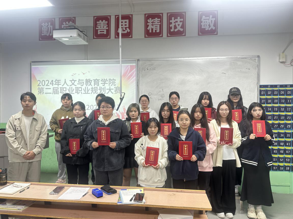 为进一步加强大学生职业生涯教育,增强学生职业生涯规划意识,引导其树立正确的成才观、就业观和择业观,科学合理规划学业与职业发展,提升就业竞争力。人文与教育学院第二届职业规划大赛于2024年10月17--22日在教学楼712成功举办。本次大赛分为成长赛道和就业赛道,吸引了众多学子的积极参与。