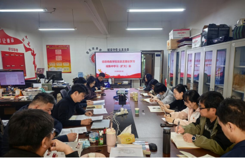 4月22日,信息商务学院党总支在办公楼410会议室召开理论学习中心组学习扩大会议,专题学习习近平总书记在地方工作期间坚持正确政绩观生动实践,学院中心组成员、各党支部书记、支部委员、三办主任、教研室主任参加会议。会议由党总支书记赵亚玲主持。