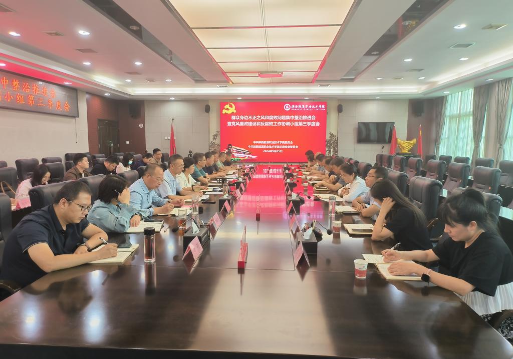 9月25日下午,群众身边不正之风和腐败问题集中整治工作推进会暨党风廉政建设和反腐败工作协调小组第三季度会在办公楼第三会议室召开。校党委书记刘予东,党委副书记 校长朱忠军,党委副书记 纪委书记刘文青,集中整治工作专班成员及协调小组成员负责人、全体纪委委员、专职纪检干部、各党总支纪检委员参加会议,会议由刘文青主持。
