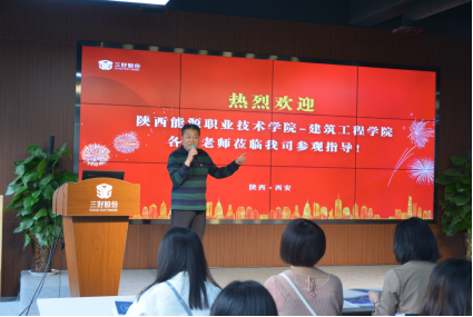 公司研发中心创意部经理项栋对双创中心的功能与定位、产品与价值、模式与创新进行了全面、深入的介绍,在整体认知上,对前面的参观、体验做了一个补充说明。紧接着公司研发中心总工程师杨小春就建筑信息一体化实训基地建设和以实训基地为依托开展装配式人才培养进行了系统、全面的阐释,整个分享具体、详实、可操作性强,赢得了大家热烈的掌声,老师们纷纷点赞。