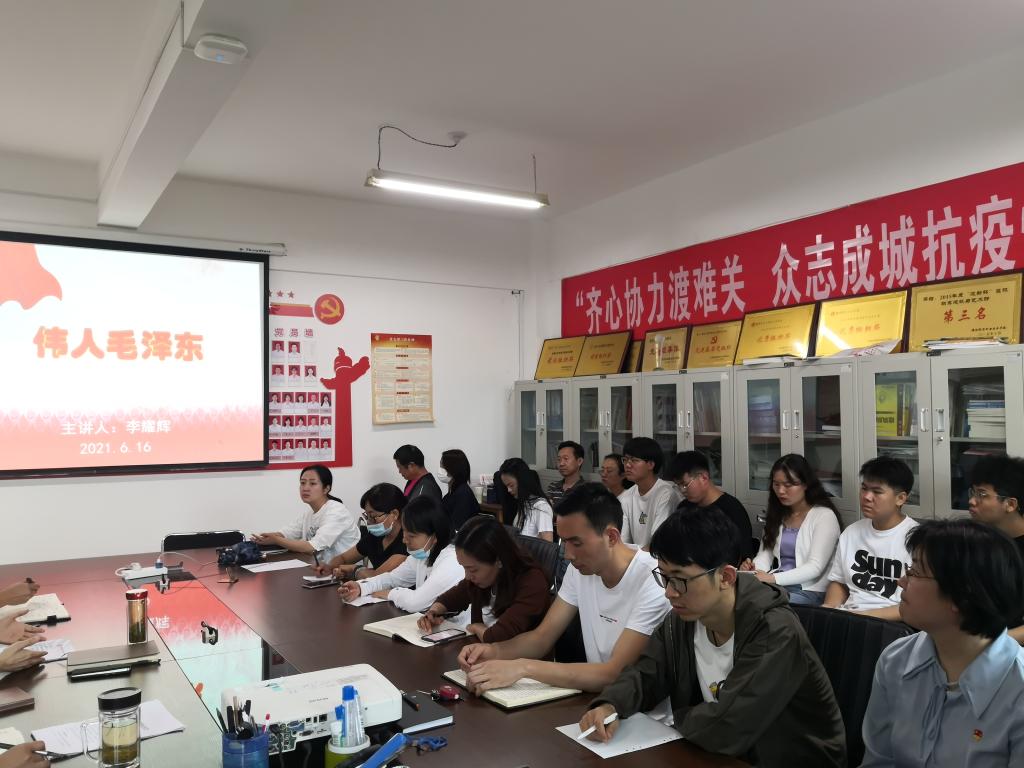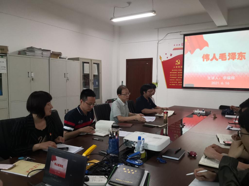 6月16日下午,学校党委委员、副校长李耀辉同志以《伟人毛泽东》为题为建测学院教工党支部、学工党支部全体党员讲党课,党总支书记买中傲主持学习会。