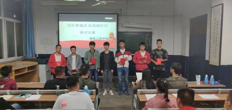 9月19日晚,学院组织全体团学干部在1-109教室举办了“说好普通话 迈进新时代”主题演讲活动。各班同学积极参与,共有12名参赛选手分别从普通话的起源发展、语言文字政策法规、陕西历史民情、十九大精神等多方面进行了演讲阐释。整个演讲过程气氛热烈,最终建工1702班王少帅获得一等奖。在同学们感受普通话,学习普通话,推广普通话的同时,本次演讲把整个普通话系列活动推向了高潮。