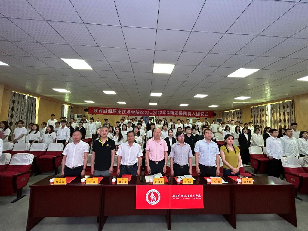 为加强共青团队伍建设,增强学生的责任和担当意识,2023年6月8日上午,陕西能源职业技术学院2022-2023学年共青团新发展团员入团仪式在文林大讲堂举行。校党委副书记任向明,各二级学院党总支书记、校团委书记、各二级学院团委书记老师及全体新团员出席了本次活动。