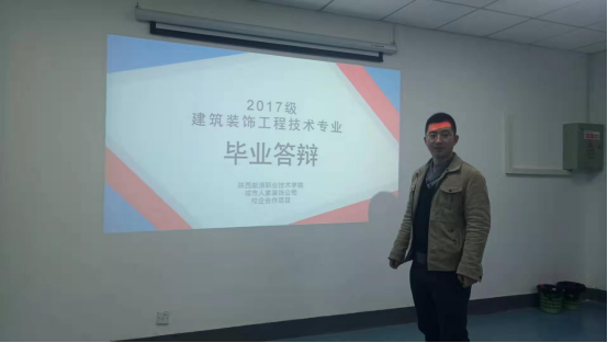 2019年12月23日,在建筑装饰工作室为2017级建筑装饰专业学生举办了毕业设计答辩,设计指导老师参与本次论文答辩评选工作,同时邀请校企合作单位城市人家装饰公司设计部经理樊晓凯参与设计点评。
