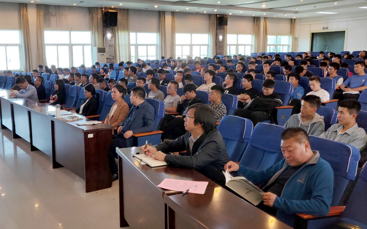 2018年9月28日下午,建筑工程学院与校企合作单位中石化绿源地热能开发有限公司在实训楼六楼报告厅举办地热能开发利用技术讲座暨实习动员大会。中石化绿源地热能开发有限公司办公室主任白丽娜、西安项目经理王鹏、华州公司经理郭刚、人力资源主管黄晓丹一行6人,建工学院书记曹蔓、院长买中傲、综合办主任、教研室主任及师生300余人参加了此次活动,活动由院长助理梁博主持。