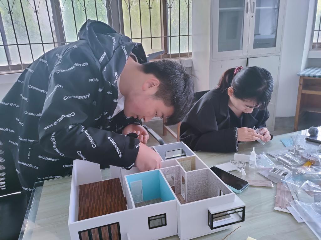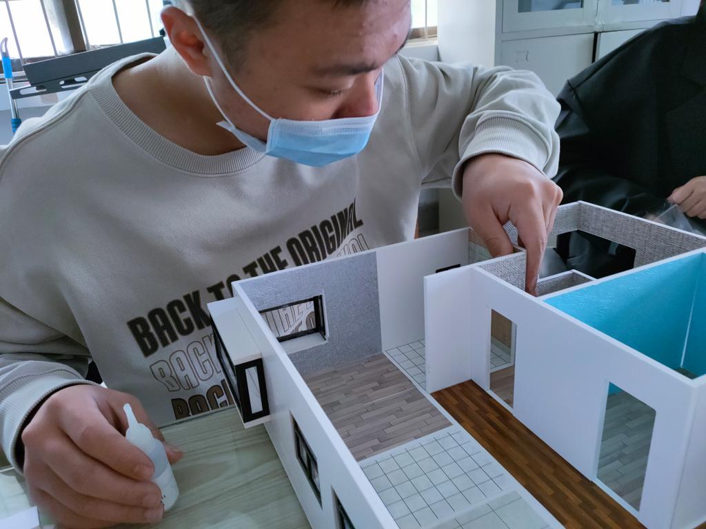 2021年4月14-16日,建筑与测绘工程学院建筑艺术教研室积极组织学生开展了“科技之春”活动,建筑装饰工程技术专业2019级的四位同学在沟增辉和李珊老师的指导下,经过前期的CAD图纸设计,到选购材料,模型制作等,完成了两套室内模型的制作,在模型展出期间,吸引了各个专业的同学前来参观,建筑装饰工程技术专业的董昭、李瑞涵、白静、李俊龙四位同学细心地为参观的同学做了介绍。通过模型制作可以把自己所学的专业知识进行综合运用,将设计方案实物话,整个过程即有趣又有成就感。