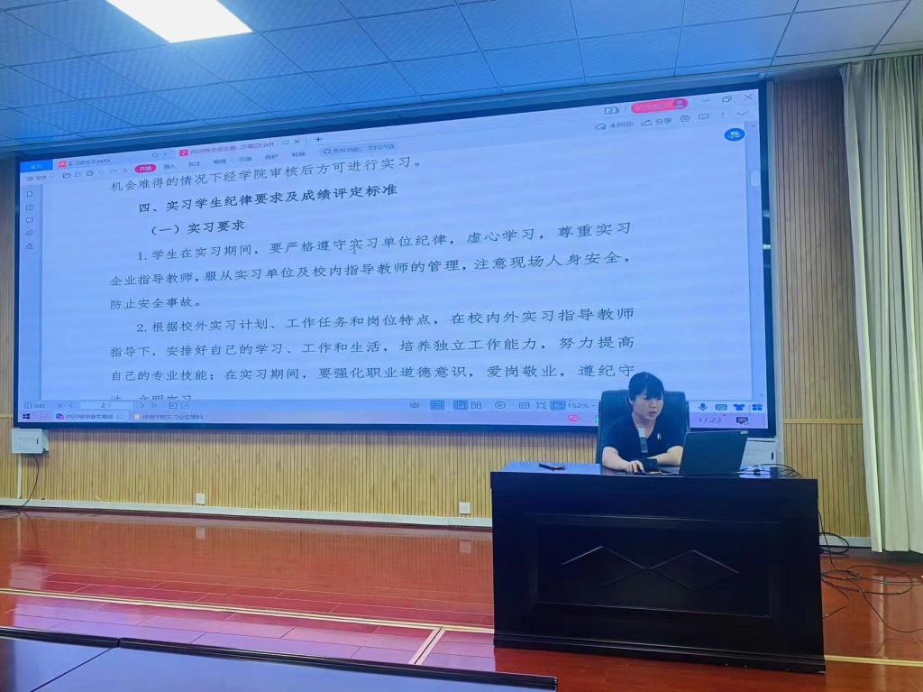接着,贺静静就2020级学生跟岗(顶岗)实习相关手续、实习过程管理、成绩评定、实习平台的使用等方面做了详细的解读。