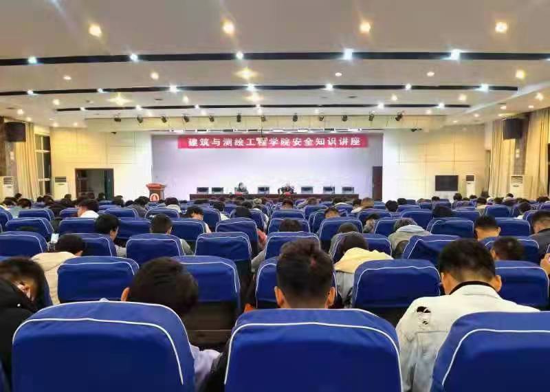1116晚,在实训楼6楼报告厅举办了主题为“安全防范,生命至上”的专题讲座,由建测学院党总支书记买中傲主持、保卫处处长周文主讲。学工班主任杨旸、全体辅导员、21级班主任及全体2021级学生参加讲座。