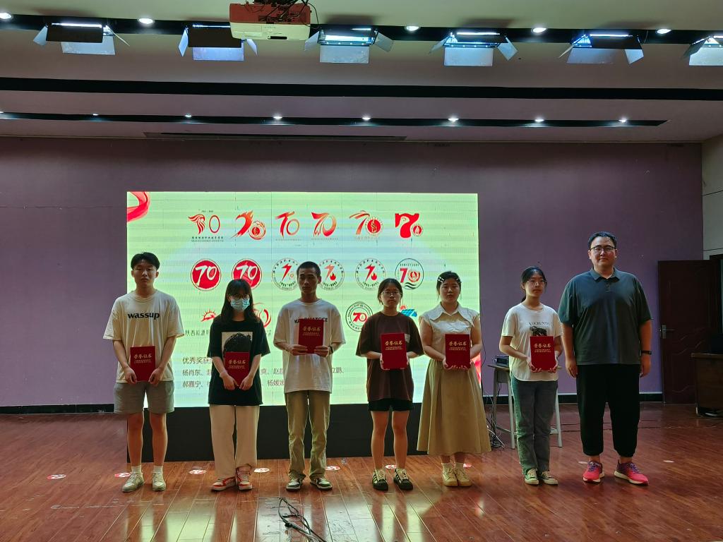 活动第一项进行了七十周年校庆标识设计大赛颁奖仪式,一等奖1名、二等奖2名、三等奖3名、优秀奖13名。