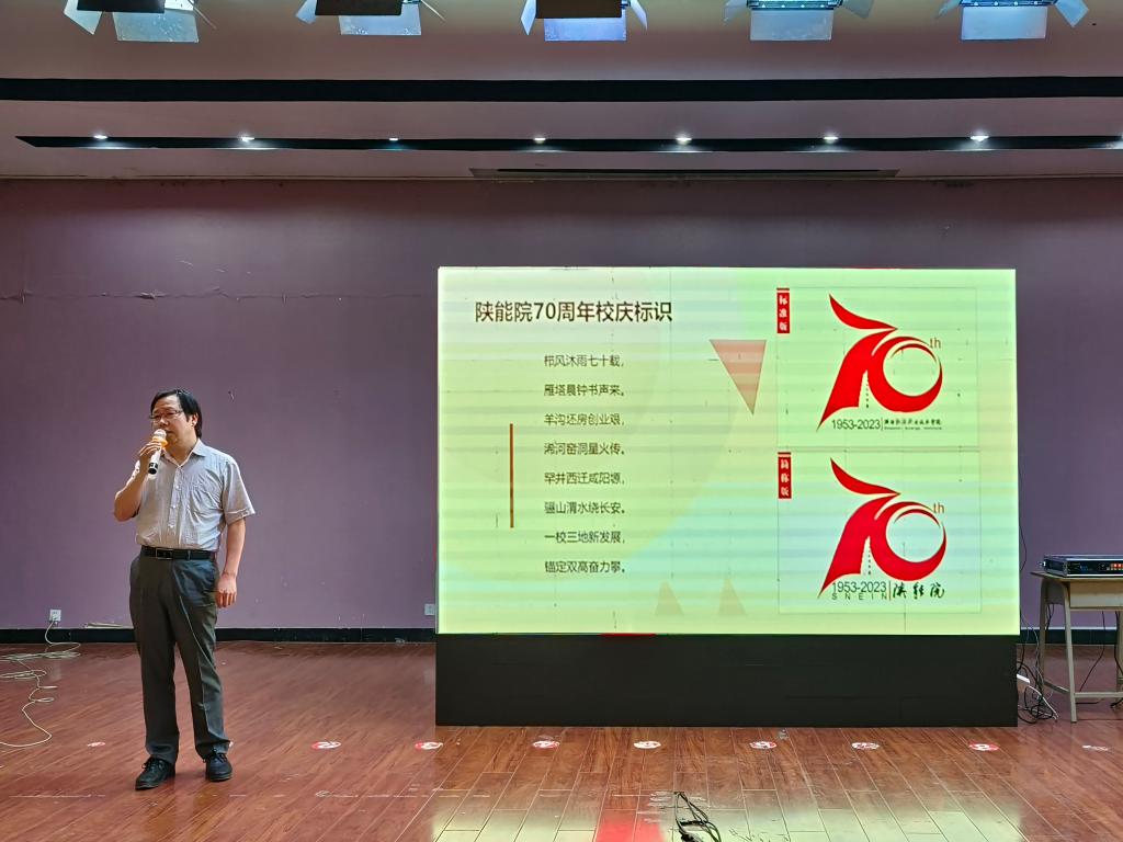 活动第二项由优秀学生代表燃气2201班冀嘉诚同学为大家解读最终定稿七十周年校庆标识含义。