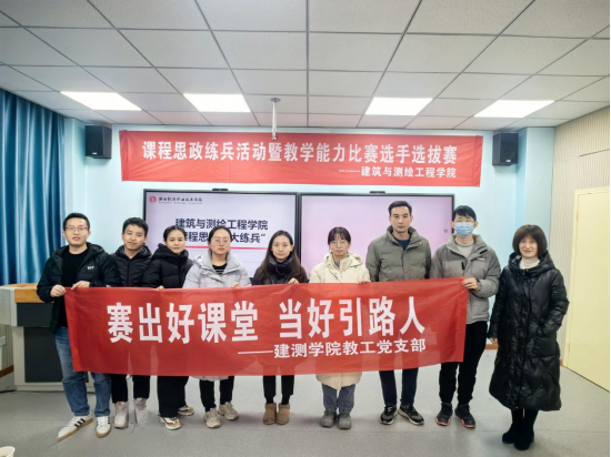为提高建测学院教工党支部教师课堂教学及课程思政建设能力,2023年12月15日建测教工党支部在教学楼509开展了“赛出好课堂 当好引路人”主题党日活动。活动邀请建测学院院长王洁、马克思主义学院院长高慧、实践教学管理处处长陶燕担任比赛评委。