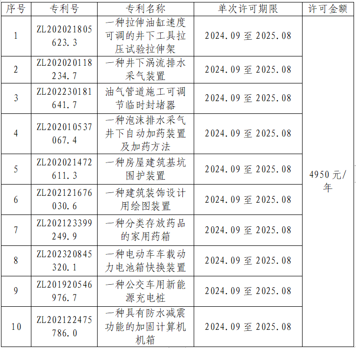 根据《陕西省知识产权局关于组织征集拟开放许可专利的通知》,结合企业需求,经征集、申请、初步审查及评价,现对2024年度拟许可专利(第二批)进行公示,具体专利信息如下: