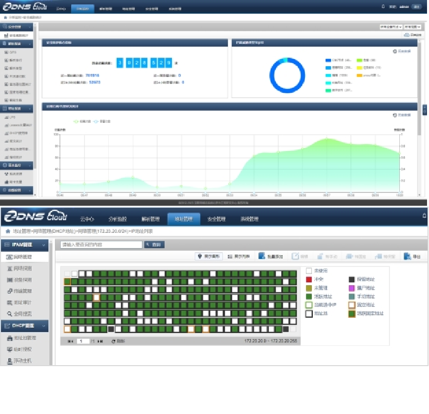 部署实施双活DNS与DHCP,实现内外网解析分离,通过优化配置,实现了内外网客户端对同一域名的不同解析结果,提供更加精确的地址解析服务,增强地址解析的安全预警能力,有效预防DNS劫持等安全威胁。内外网解析分析,提升了校内师生访问业务系统的速度,提高了业务系统与数据中台数据流通交换的速率。DHCP服务上实现了地址池的可视化精细管理,通过图形化展示地址池利用率和IP地址分配情况,优化了网络资源分配。结合业务需求,实现了地址池的整体动态分布与个别电脑静态不变的双重管理,确保特定业务的稳定性和连续性。以上措施不仅提高了网络管理的效率和安全性,也为学校的信息化建设提供了坚实的基础。