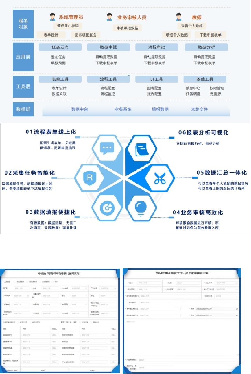 教师数据一表通平台建设依托数据中台技术,通过系统集成和流程优化,实现了教师信息管理的全面提升。项目通过对接学校数据中台,实现了基础数据的自动化填报。教师只需在系统中完成必要补充信息,即可完成个人数据的全流程录入,无需多次重复填写,大幅提升了数据填报效率,减少了人工输入的错误率。创新性地将教师职称评审流程全面线上化。通过流程化、模块化的系统设计,教师从申报材料准备、审核到评审结果反馈,全流程均可在线操作,极大地提高了评审工作的透明度和便捷性。系统自动关联评审所需的多维度数据,并智能生成评审报告,为职称评审提供了高效可靠的数据支撑。平台的应用不仅优化了教师数据管理流程,降低了人力成本,还显著提升了信息化服务水平,为学校数字化转型和智慧校园建设奠定了坚实基础。