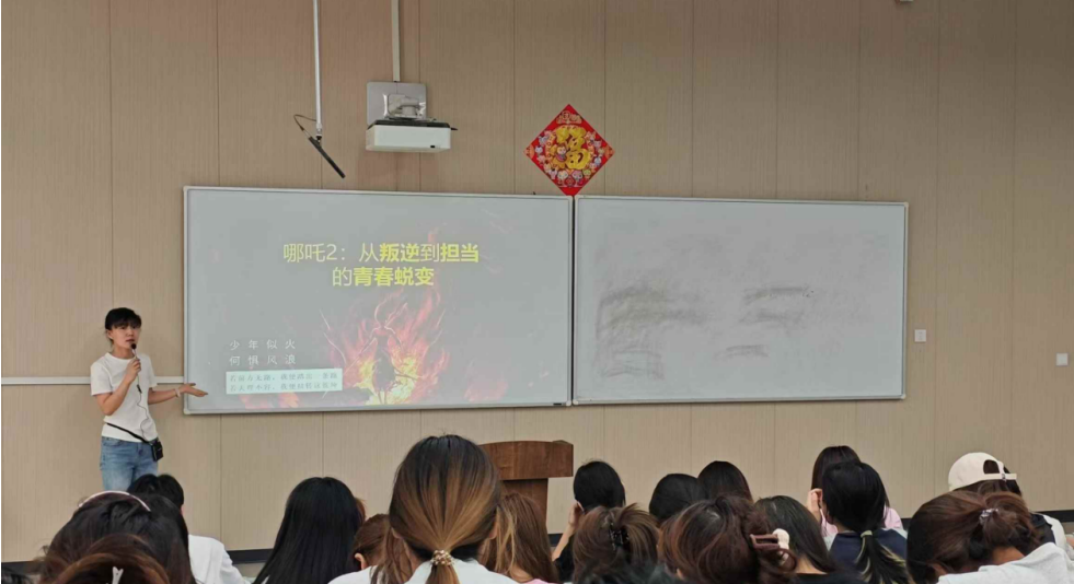 为深入学习贯彻习近平新时代中国特色社会主义思想,激励新时代青年在中国式现代化建设中挺膺担当。5月13日下午马克思主义学院在临潼校区102室举办了第二十期菁英论坛。此次菁英论坛主题为“哪吒2:从叛逆到担当的青春蜕变”,王甜主讲,近100名同学参加。