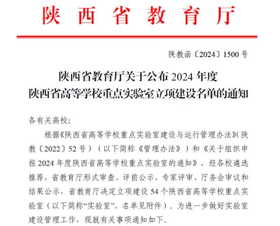近日,陕西省教育厅发布了《关于公布2024年度陕西省高等学校重点实验室立项建设名单的通知》。我校“煤矿灾害智能化防控陕西省高等学校重点实验室”获批2024年度陕西省高等学校重点实验室。该实验室是我校首个省高等学校重点实验室。