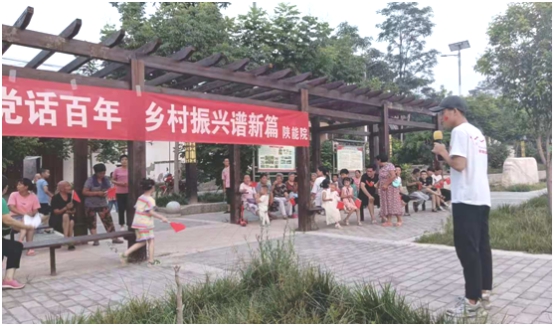 7月18日,陕西能源职业技术学院“青春闪光 星火传承”社会实践团在高塘镇柿村红星文化广场开展“青春向党话百年 乡村振兴谱新篇”党史宣讲活动。