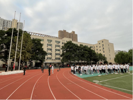 6点40分,国旗护卫队步履铿锵,护送国旗入场,伴随着庄严的国歌声,鲜艳的五星红旗冉冉升起,全体师生满怀信心,以饱满的精神状态迎接新学期的到来。周少丽在仪式上发表讲话,在新学期对能院学子提出以下要求,一是要重安全、抓防范,二是要改陋习、健身心,三是要学技能、提素养,四是要显个性、展风采,以全新的精神面貌迎接新学期的生活和学习,为自己的大学生活增添浓墨重彩的一笔。