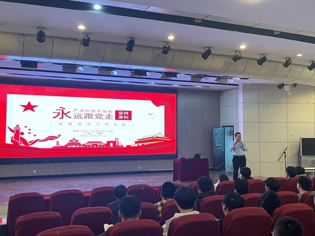 为深入学习贯彻习近平新时代中国特色社会主义思想,落实党的二十大精神,严格执行党员发展工作程序,增强我院入党积极分子对党的路线、方针、政策的认识,提升党性修养。根据学校组织部工作安排,煤炭与化工产业学院党总支于3月11日至14日在实训楼六楼报告厅为全院314名入党积极分子开展初级党课培训。