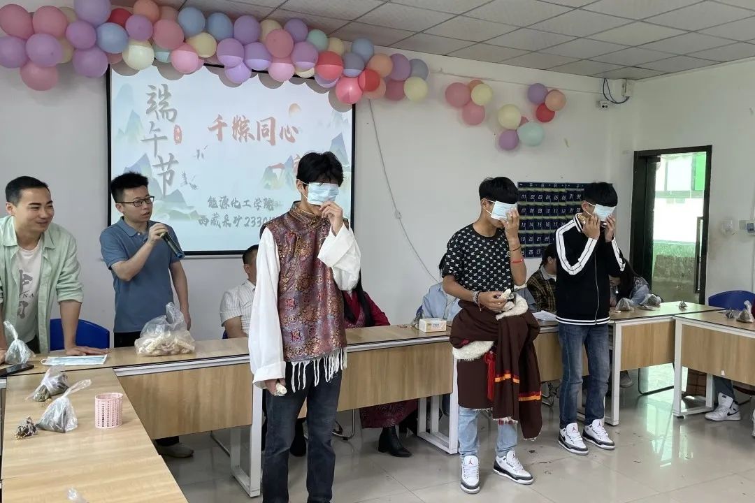 5月29日中午,能化学院学工办在培训楼405、413教室举办“粽情端午,温馨阿里”联欢会,学院党总支副书记陈辉、学工办主任李鹏、班主任李文文、杨姣、高智军老师与学生代表参加联欢会,活动特邀22级与23级阿里班全体学生参与,70余人欢聚一堂,共庆端午佳节。