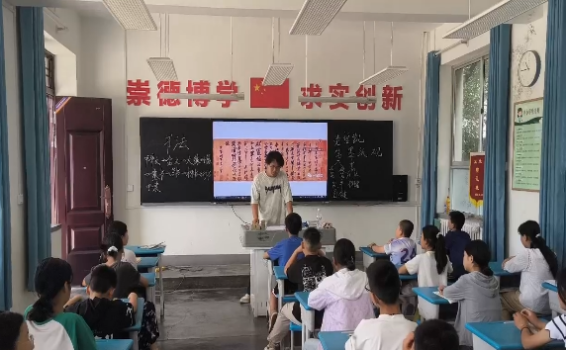 课堂伊始,实践队员们以真诚的笑容与生动的介绍拉近了与孩子们的距离。他们不仅分享了自己的姓名、所学专业和来自哪里,更传递出对乡村教育的深切关怀和对孩子们未来的美好期许。孩子们从最初的羞涩拘谨,逐渐被大哥哥大姐姐们的热情所感染,课堂气氛在互动中迅速升温。课堂上,每位同学都上台作了自我介绍,大声讲出自己的兴趣爱好,为之后的课堂良好氛围打下基础。