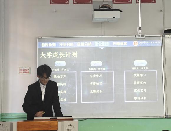 本次大赛旨在以赛促学、以赛促就,覆盖学院三个年级学生,分设“成长”与“就业”两大赛道。选手们通过PPT陈述,从自我认知、职业环境分析、目标岗位定位及实施路径等方面在赛场上激烈角逐,全方位展示了各自科学、多元的职业蓝图。评审老师们对每一位参赛选手立足专业、面向产业的实际规划逐一给予点评。同时,也中肯地指出,职业规划需进一步将个人技能提升与学院发展特色、行业技术变革相结合,使发展路径更清晰、更可持续,在场同学深受启发。