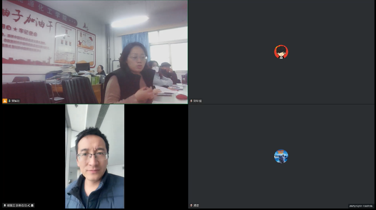 为深入推进双高建设援疆帮扶任务落地见效,切实以党建引领职业教育高质量发展,构建“党建+业务”深度融合的帮扶模式,2025年12月31日,我方与新疆阜康职业技术学院以“线上(腾讯会议)+线下”相结合的方式,在开展煤化工技术人才培养方案修订专题研讨的基础上,同步开展党建学习交流活动。陕西延长石油集团有限责任公司正高级工程师张锋三、阜康职业技术学院陈平老师、我校宋军旺、贾雪梅等教师代表参与此次“党建+业务”融合交流活动,有效推动了双方党建经验互鉴与专业建设协同。