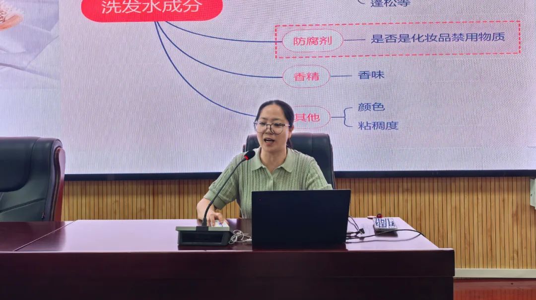 在讲座的分享中,严瑾老师层层解码生活细节:通过洗发水成分表揭示表面活性剂的清洁原理,解析牙膏摩擦剂与牙齿健康的微妙平衡;用洗涤剂中的酶制剂解密衣物去污机制,结合塑料瓶底的三角符号解读材料特性与安全风险;更针对美容产品成分展开辨证分析,通过案例对比阐明"科学护肤"与"过度化学"的界限。图文并茂的分子结构演示与生活场景动画,将抽象理论转化为可感知的实用知识。