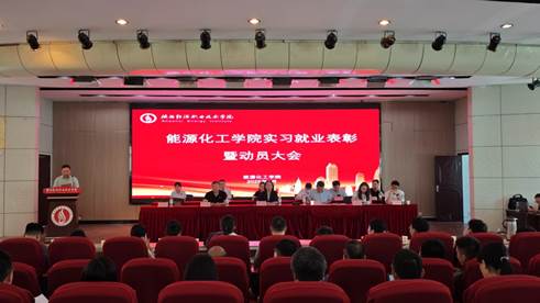 5月22日,能源化工学院实习就业表彰暨动员大会于实训楼6楼报告厅举行。党总支书记陶燕、院长李炜怿、党总支副书记陈辉、副院长吴海龙、企业代表、教师及学生齐聚一堂,共同总结实习就业工作,表彰优秀典型,本次会议由吴海龙主持。