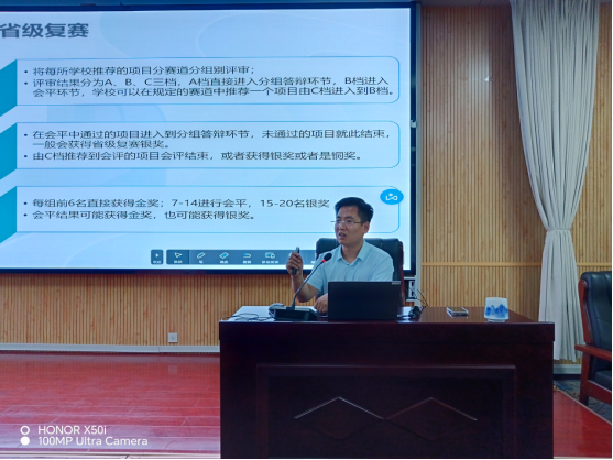 自校赛开展以来,学校已举办多场线上、线下项目培训活动,下一步,学校将全力服务项目团队,全程跟进省赛备赛项目,为各项目团队提供全程的路演场地支持、技术人员支持、项目经费支持等,继续全力以赴做好省赛参赛组织工作。