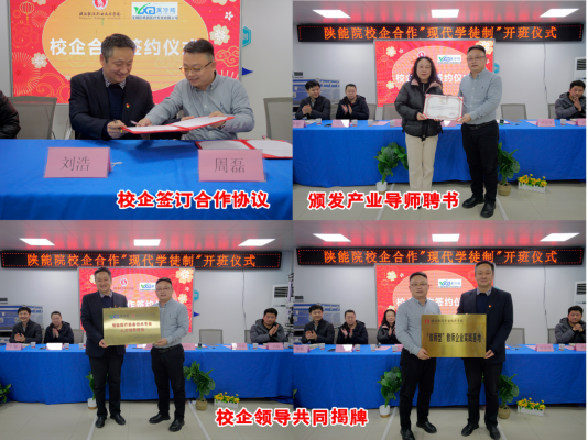 然后,双方领导就“现代学徒制班”签订《校企共建协议》,并进行“智能医疗装备技术”人才培养基地、“双师型”教师企业实践基地授牌及颁发产业导师聘书仪式。