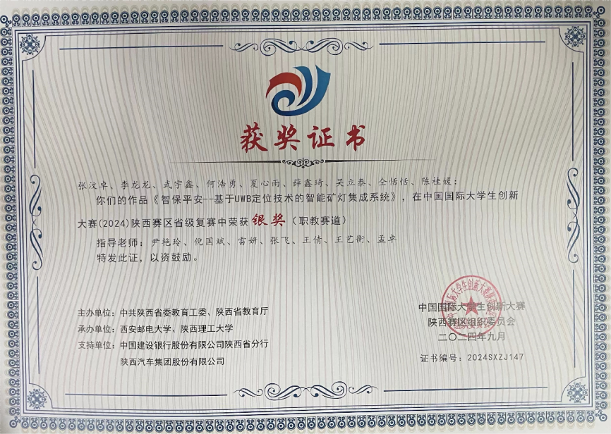 大赛自启动以来,学院高度重视,开展专题培训,组织200余个团队报名参赛。经过院级线下初赛打磨、校级路演答辩推荐和省级决赛评审,由黄俊梅老师团队提出的首屈一“趾”—采油压裂装置智能化改造领先者项目经过层层选拔在大赛中脱颖而出,斩获陕西省赛职教赛道金奖、产业赛道铜奖,黄俊梅荣获“受表扬指导教师”荣誉称号;尹艳玲老师团队提出的智能平安——基于UWB定位技术的智能矿灯集成系统项目以及王艳蓉老师团队提出的“智”根知底--智能电位检测分析系统项目分别获得陕西省职教赛道银奖。
