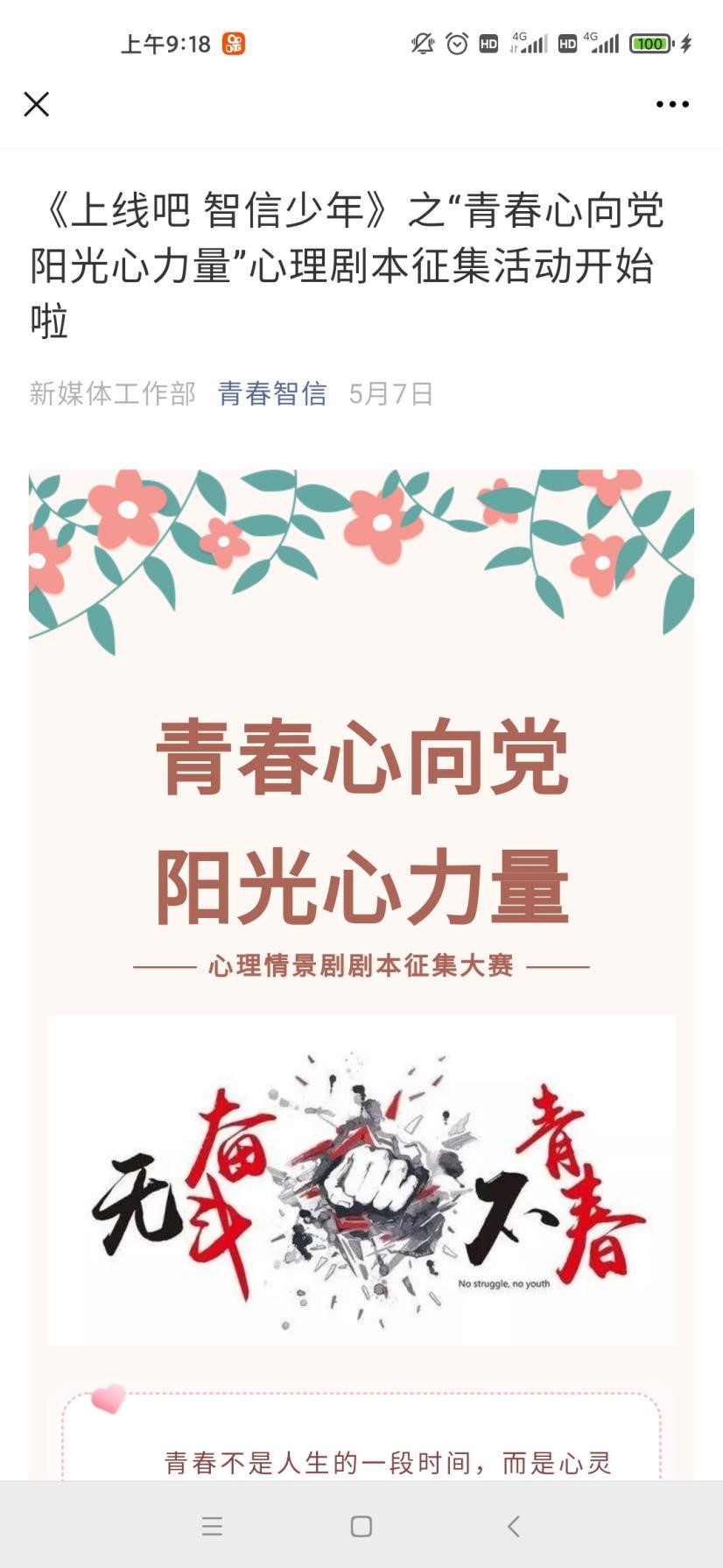 智信学院面向全院学生开展以“青春心向党 阳光心力量”为主题的心理剧本征集活动