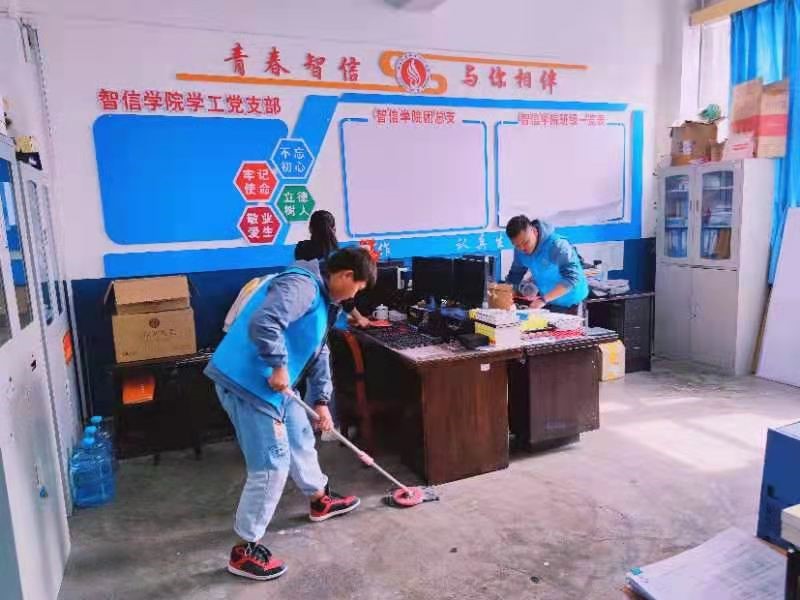 为了给同学们提供良好的学习环境,增强学生的环境保护意识,感念辅导员老师在日常学习和生活中关切和培育,2021年3月14日下午2:00-6:00,智信学院各班班委及匠心青年志愿者服务队共计45名志愿者开展“感念师恩˙美化环境”志愿者互动,清扫教学楼4楼409、414、5楼506及实训楼4楼。
