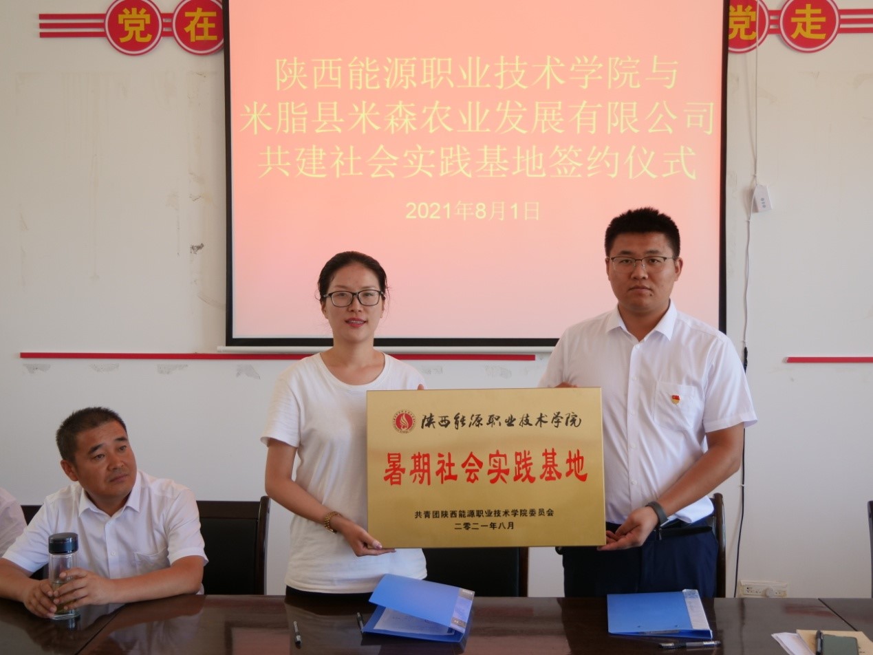8月1日上午,陕西能源职业技术学院与米脂县桃镇新尚沟村村民委员会及米脂县米森农业发展有限公司在新尚沟村委会举行共建社会实践基地签约暨授牌仪式。新尚沟村第一驻村书记乔喜军、新尚沟村村支书、米森农业发展有限公司负责人、优秀校友任宏宇及村委会主要负责人、我校暑期社会实践带队教师景安琪、王倩及实践团成员参加仪式。本次仪式由暑期社会实践带队教师、智信学院学工办主任景安琪主持。