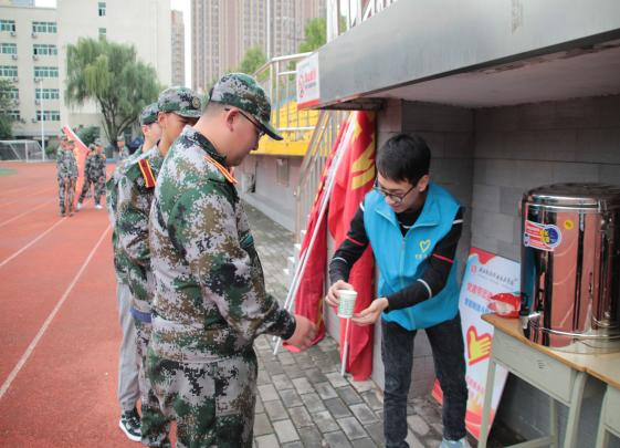 此次活动经智信学院党总支安排部署,学工支部组织落实,入党积极分子和团学干部积极参与,保卫处、学生处、后勤保障处大力支持,于10月14日拉开序幕。后勤保障处为各位同学提供了暖水桶,“匠心青年”志愿者们会在军训期间,每天上午下午两班轮流服务,志愿者每天负责用自己的暖瓶提热水倒满暖水桶,方便同学们接水引用。在服务站智信学院还为军训的同学提供了一次性水杯、白糖等物品,为军训工作做好后勤保障,确保21级新同学和教官们能够及时补充水分满足身体所需。