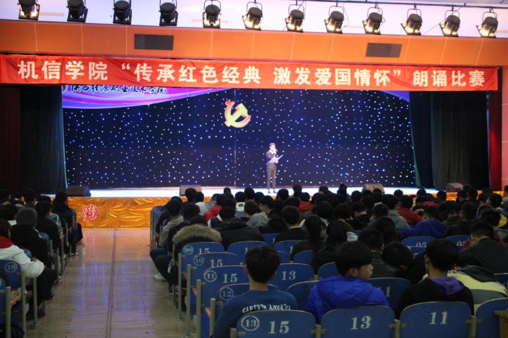 为加深学生对革命历史的了解,激发学生的爱国主义情怀,根据《机信学院革命文化教育实践“五个五十工程”2018-2019学年活动方案》安排,启动仪式后机信学院特举办“传承红色经典 激发爱国情怀”朗诵比赛。