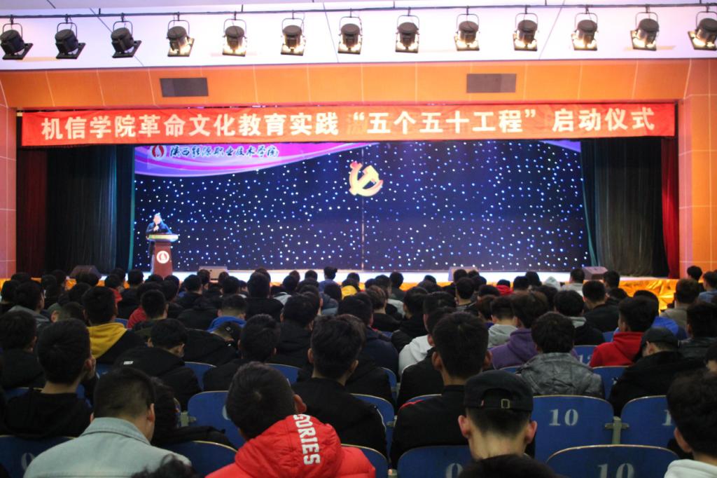 为扎实推进习近平新时代中国特色社会主义思想“三进”工作,贯彻落实党的十九大精神和中省关于高校思想政治工作精神,引领大学生自觉践行社会主义核心价值观,继承和弘扬革命精神。2018年11月15日晚19点30分,机信学院在大学生活动中心召开了机信学院革命文化教育实践“五个五十工程”启动仪式。组宣部宣传科科长李粒老师、学工部学生教育管理科科长刘玲老师、团委陈杰老师、机信学院学工办主任冯帅老师、机信学院全体辅导员及全体大一学生参加了本次活动。