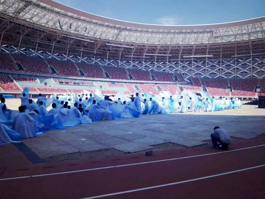 8月11日,机信学院的志愿服务的同学们前往咸阳市奥体中心进行第一次场馆彩排。