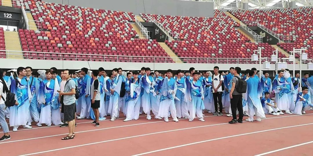 当清晨的第一缕阳光映照在大地上,机信学院的志愿者们早已经到达了咸阳市奥体中心,充实的一天就这样开始了......每个人脸上的表情已经透露出机信学子对于第一天在奥体中心排练的自信满满。随即就开始了一天的艰苦排练生活。