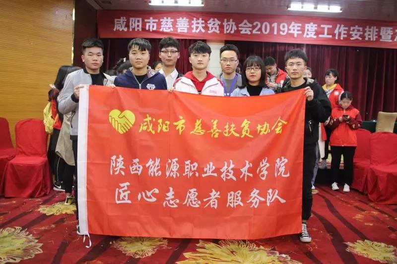 在此次会议中我院志愿服务队接过代表志愿者精神的队旗,正式成为咸阳市慈善扶贫协会的一支光荣的志愿者服务队。