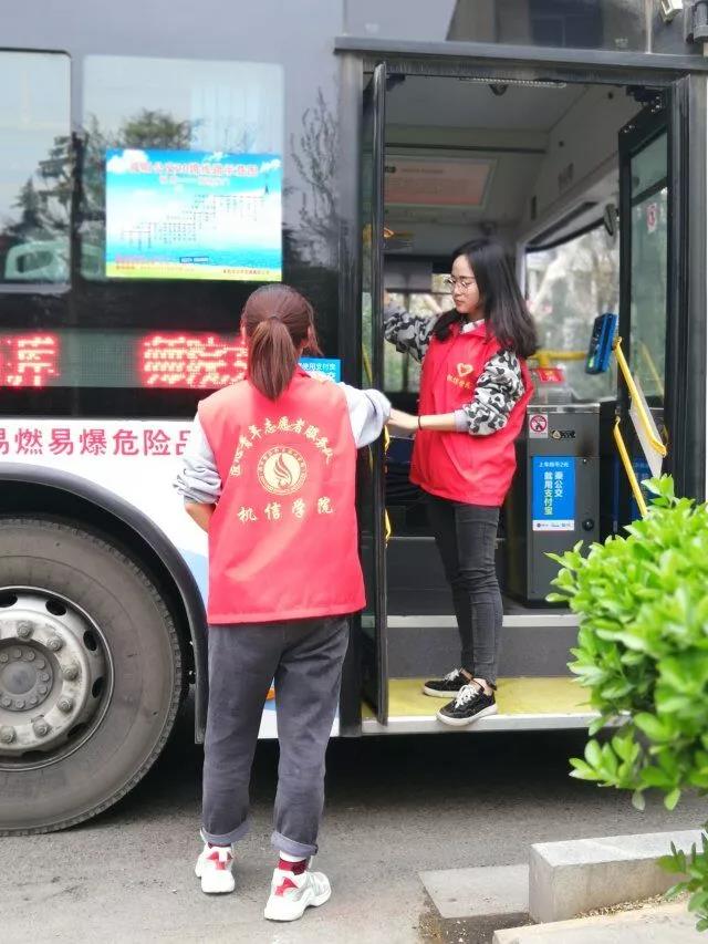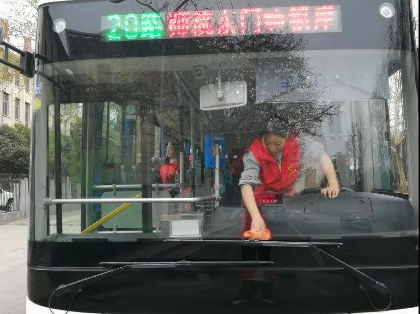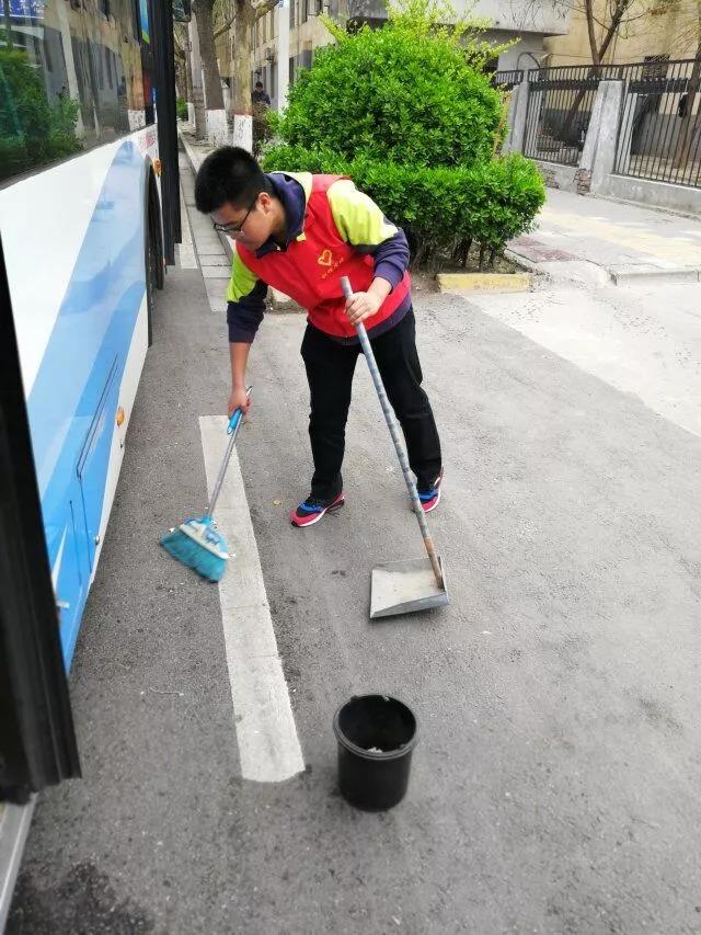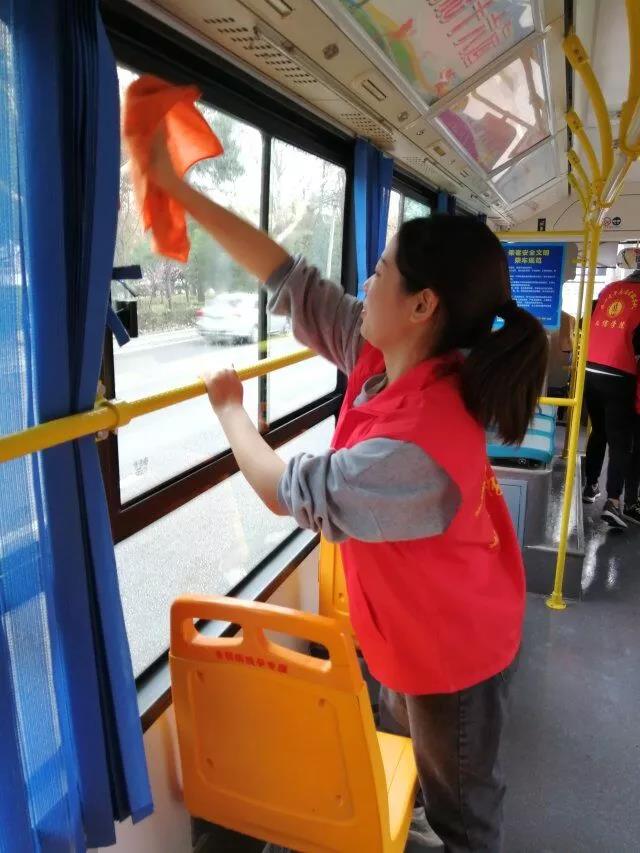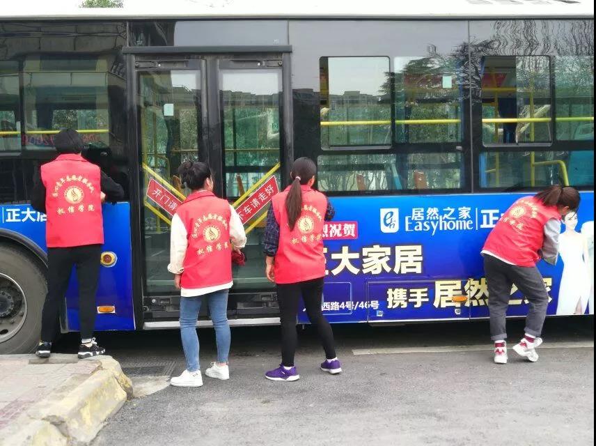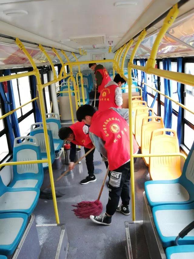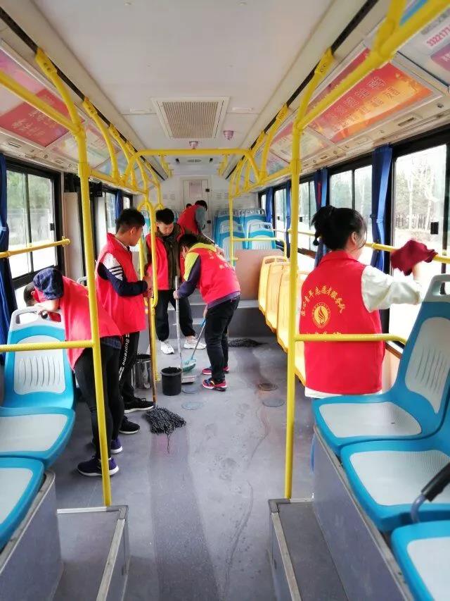 2019年3月27日下午3:50分,由我院团总支学生分会组织在咸阳渭城区文林路20路公交车车站开展义务打扫公交车活动。